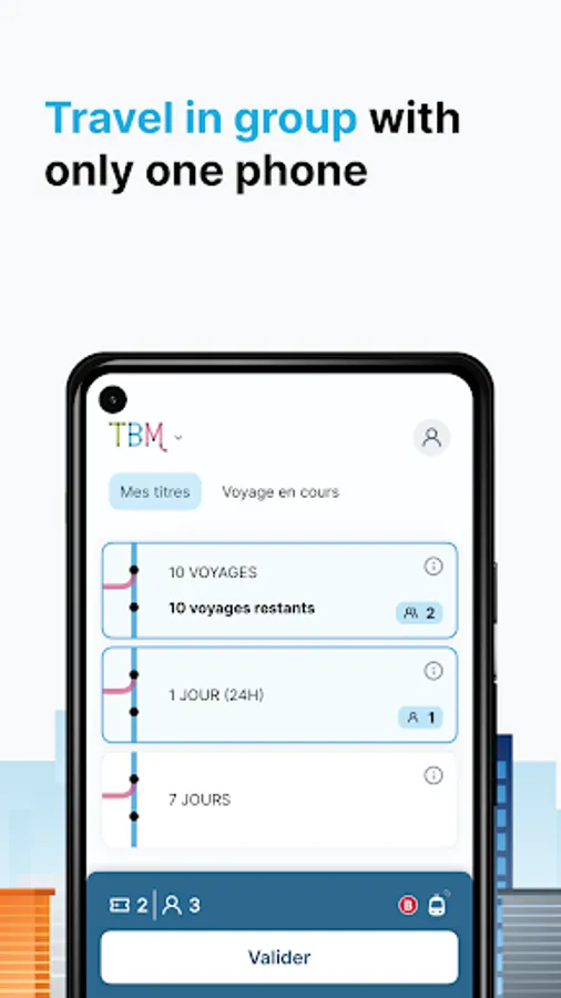 Buy digital transportation tickets from the Witick app in one click for all TBM Bordeaux: tram in Bordeaux, bus in Bordeaux and Bat3 boats in Bordeaux.