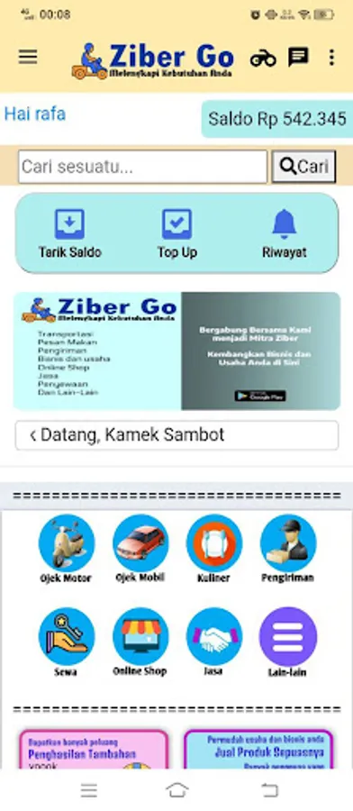 Ziber Go is an application that becomes a platform for people to meet their daily needs.
