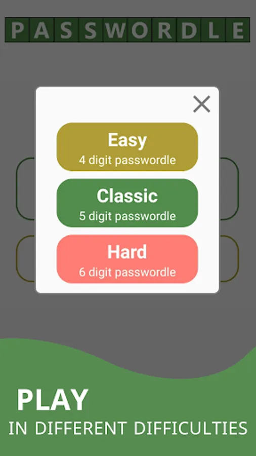 You can choose between an easy level (4-digit password), the classic level (5-digit password) or a hard level (6-digit password).