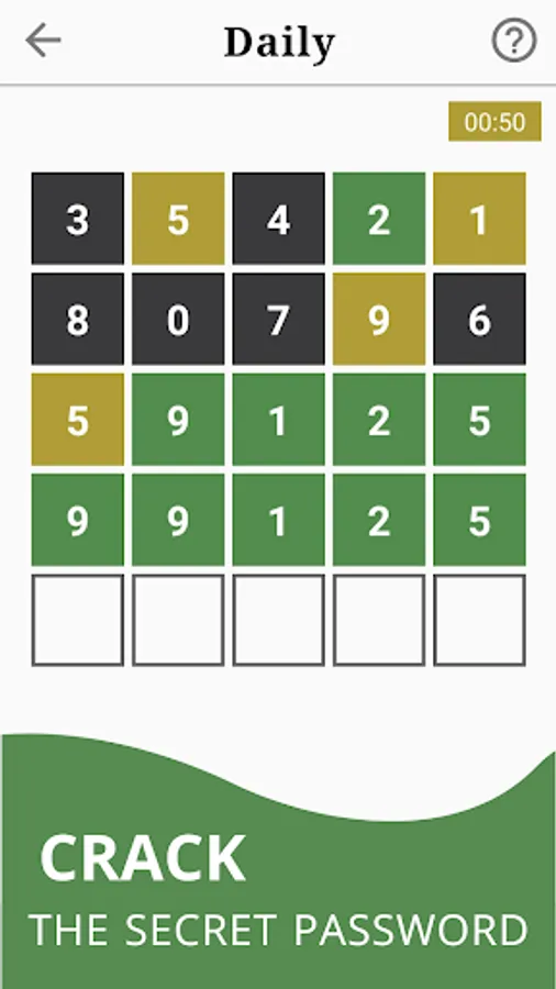 ⬜ A digit that isn't in the password in any spot shows up grey.