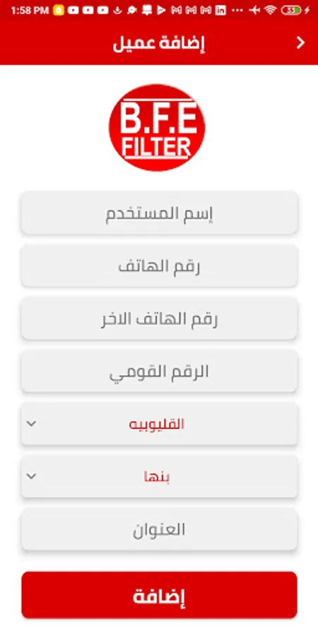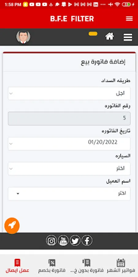 The customer can log in with the user name and password, and then add receipts and invoices, know the monthly bills, and add representatives in our governorates