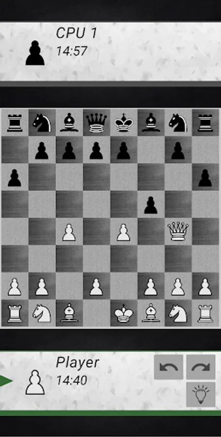 If you want to play against CPU player, there are 13 difficulty levels, select one that suits you best. No matter if you are a beginner, who still learns how to play chess, or you are a chessmaster, you will find something for yourself. When playing one of low difficulty levels, CPU player will make some mistakes, so you will be able to beat it easily. Highest difficulty levels allow CPU to think couple of moves forward, so it can predict what you're going to do and make appropriate move.