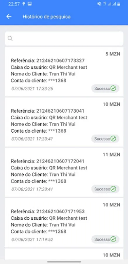 - View history of all transaction with detail status and description.