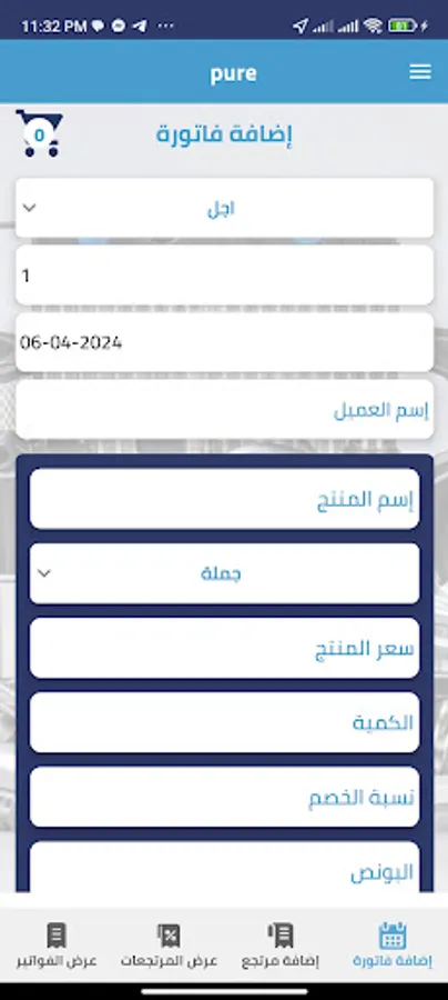 The customer can log in with the user name and password, then add receipts and invoices, find out the monthly invoices, and add representatives in our governorates.