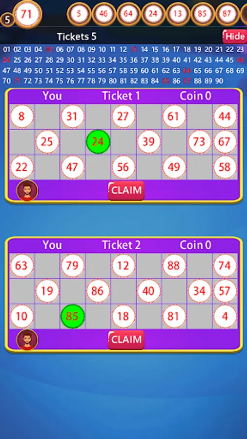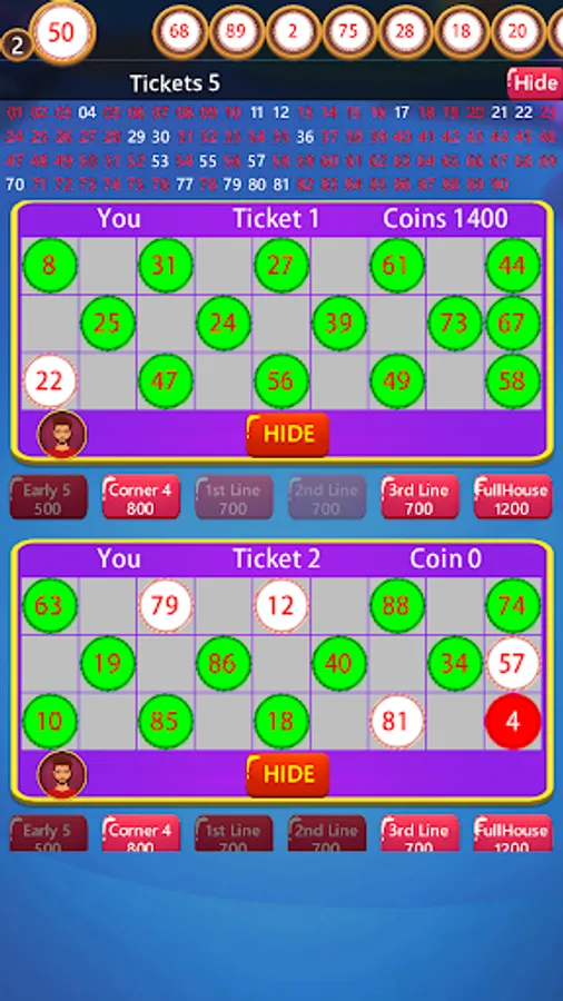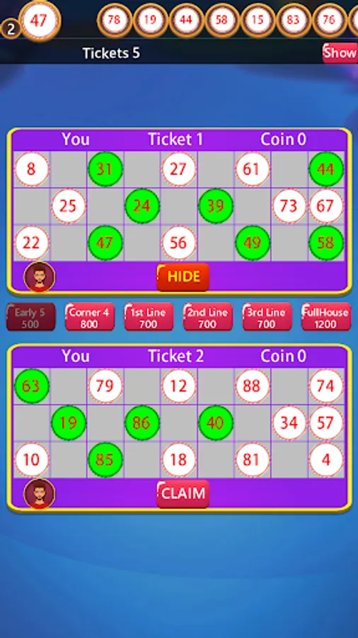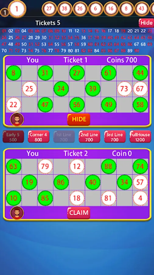 * The player who first mark all the numbers can claim win, after claiming for win his/her ticket will check and verify. If player tickets claim is right then Player is declared as the winner of that pattern and player claimed is wrong the it will be called BOGEY and player cannot continue the game with the same ticket.