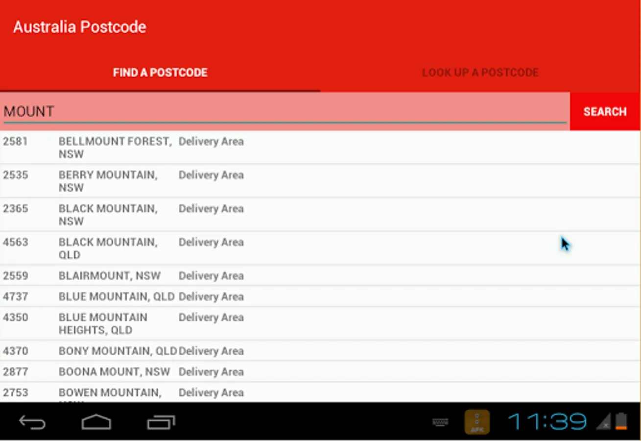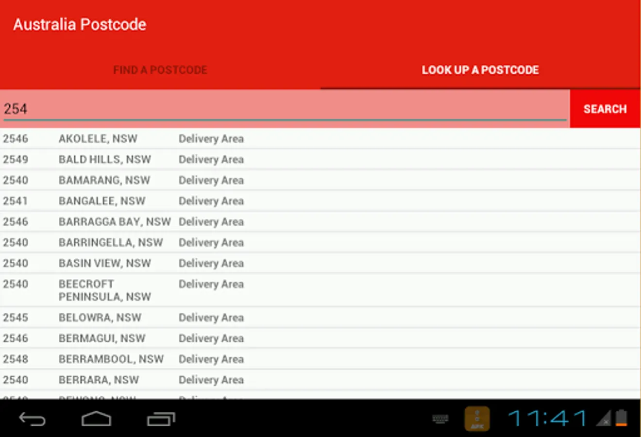 The app can work offline so no need to be connected to internet to find a postcode.