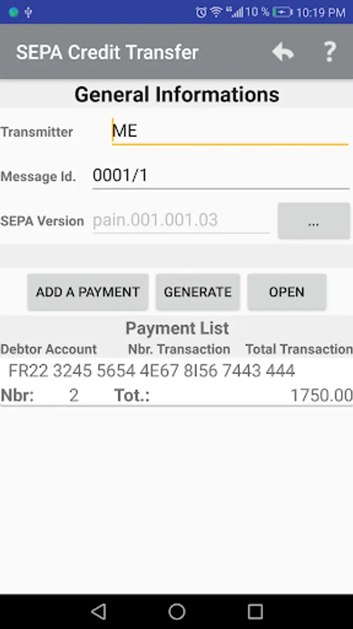 -Open an existang SEPA transfer file and edit it "*NEW*"