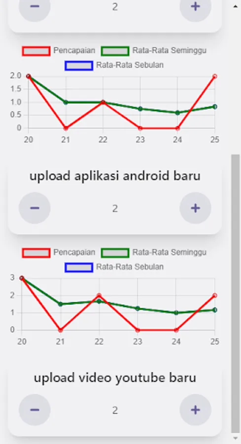 Get deep insight into your progress with a comparison of 7 and 30 day moving averages. It helps you understand short-term and long-term trends, so you can adjust your habits to achieve best performance.