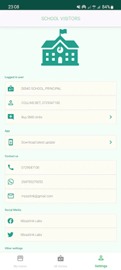 This app works together with Mzazilink Visitors app used by security personnel at the school entrance.