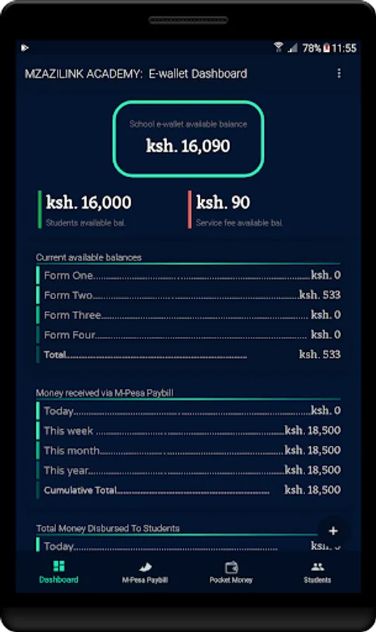 MzaziPay has a secured wallet that is used to receive students upkeep from parents via M-Pesa and disburse students.