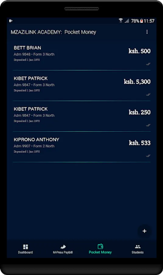This system is backed up by a bulk SMS that helps in keeping parents informed when: