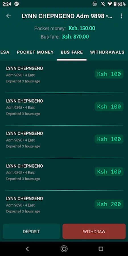 This system is backed up by a bulk SMS that helps in keeping parents informed when: