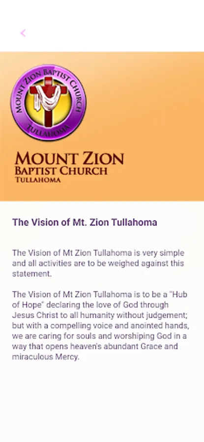 The Vision of Mt Zion Tullahoma is to be a "Hub of Hope" declaring the love of God through Jesus Christ to all humanity without judgement; but with a compelling voice and anointed hands, we are caring for souls and worshiping God in a way that opens heaven's abundant Grace and miraculous Mercy.