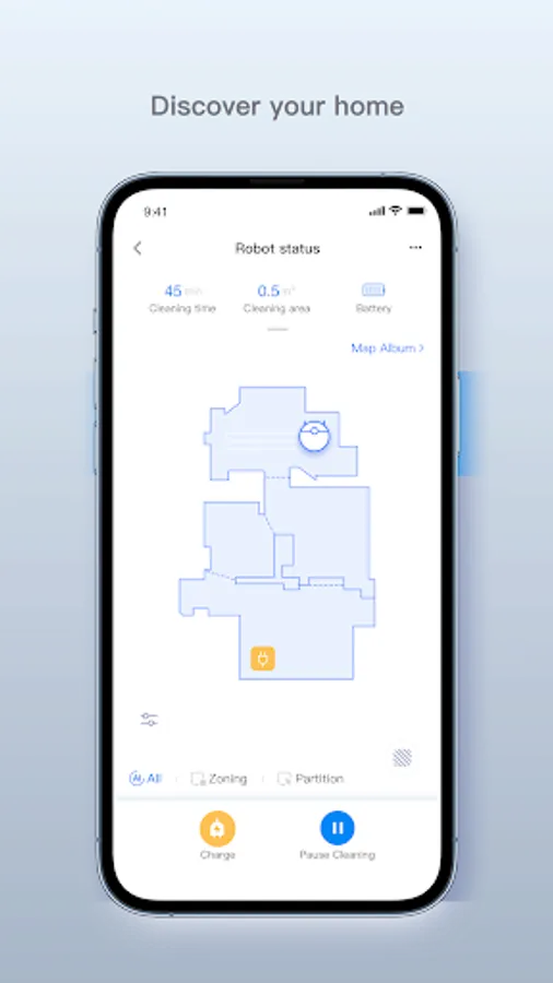 POWERbot-S APP just helps you to release your hands from housework. You can only control you robot vacuum via app, to get started, go back to docking station or other controls.