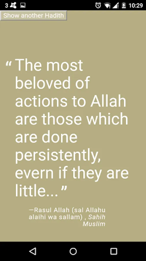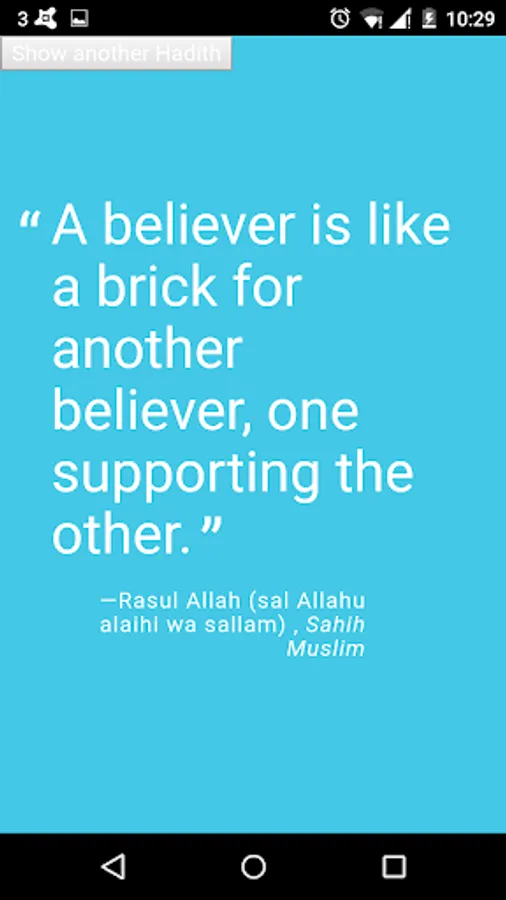 The daily hadith app by MZ studios is very simple to use app and works on all android device’s . It will have regular updates to ensure you never run out of hadiths.