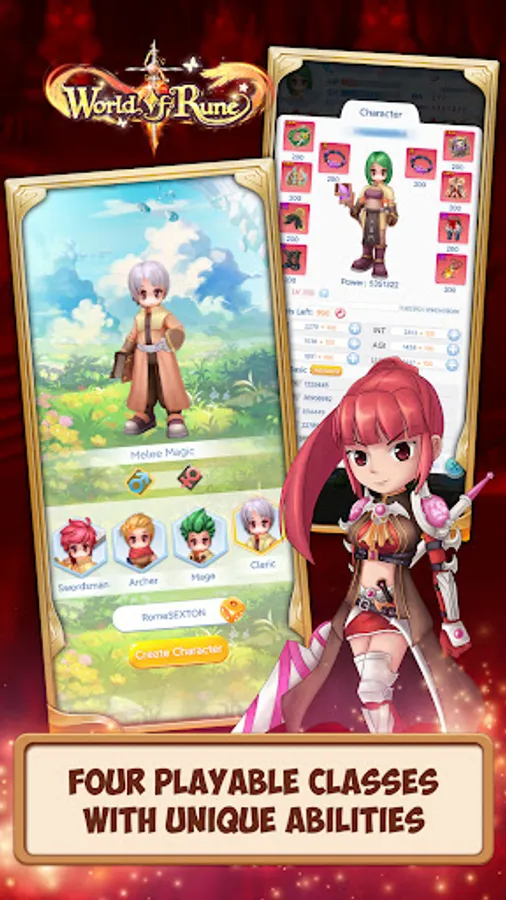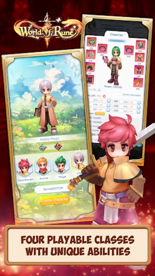 You start out as a novice class character, and later you can choose a class. You can play as a Swordsman, Mage, Archer and Cleric.