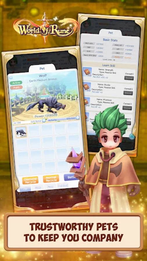 Collect and grow mystical pets that help you on adventures. You can also capture monsters in dungeons to raise them as new pets.