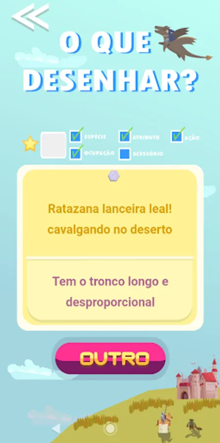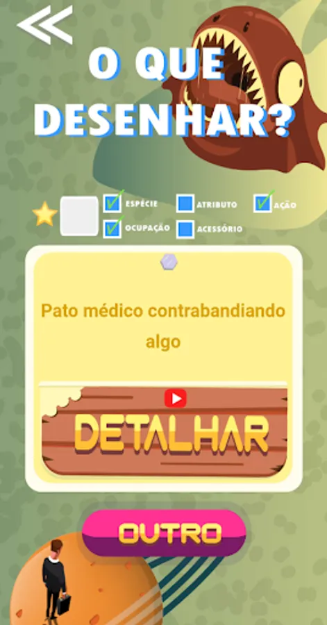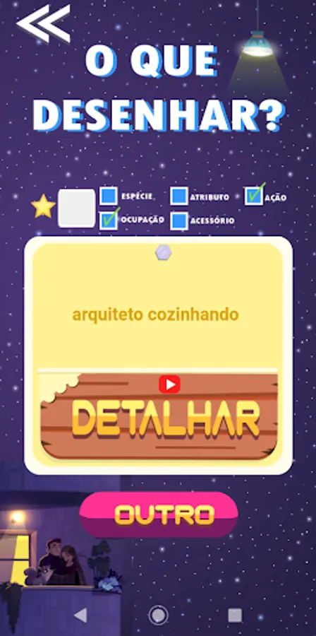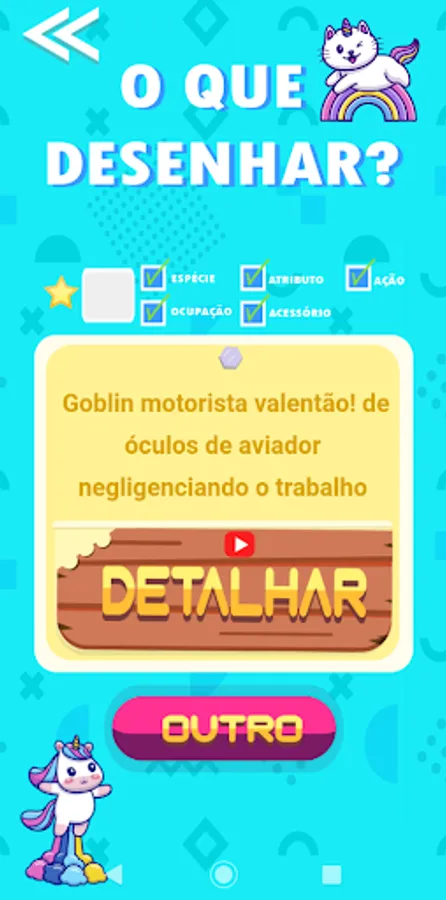 This application is ideal for those with creative block, with one click get an idea to draw, if you don't like it, try again and another drawing option will appear.
