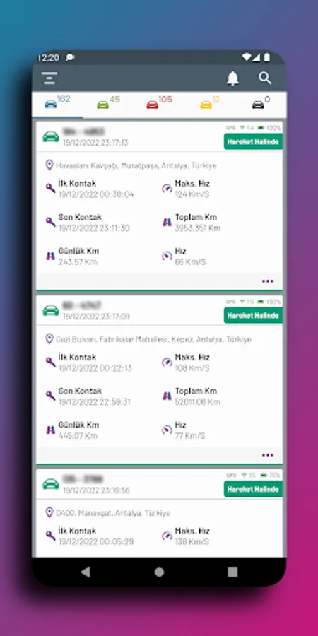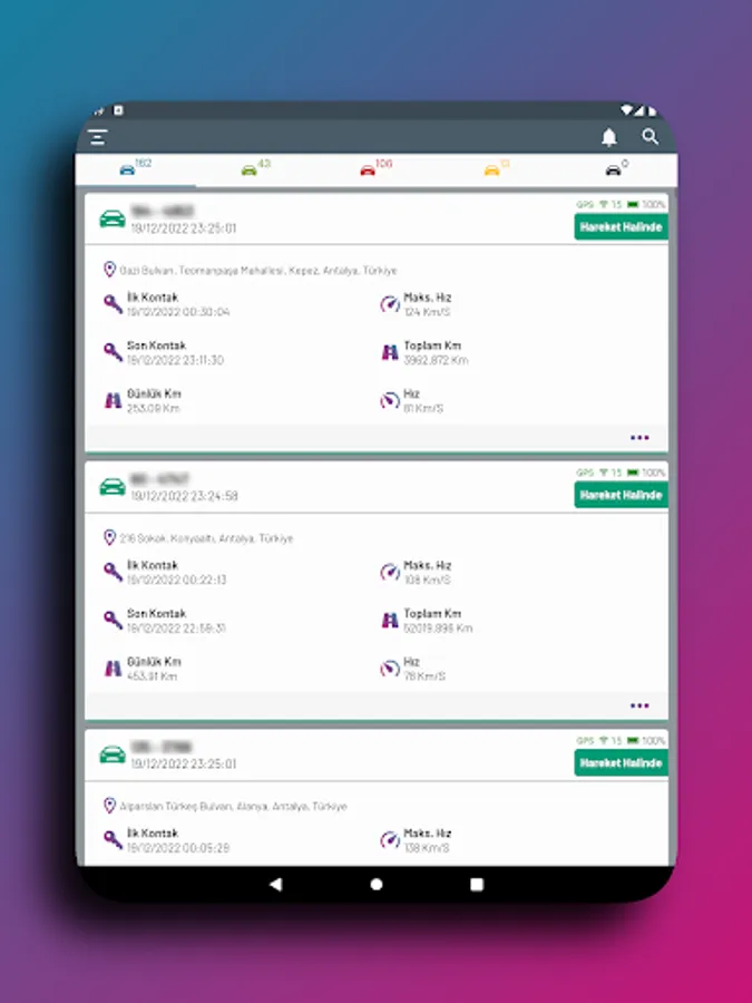 You can easily and quickly access reports such as end-of-day summary report, history tracking and km detail report of your vehicles, as well as many alarms such as overspeed alarm, ignition opening/closing alarm and withdrawal alarm from all platforms, and make instant adjustments.