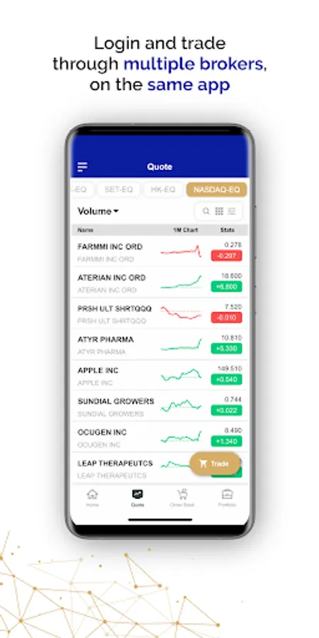 AsiaEBroker is a single mobile application that allows traders to log in with their existing broker and trade. Equipped will powerful tools that enable traders to monitor the market, submit orders and manage their portfolios.