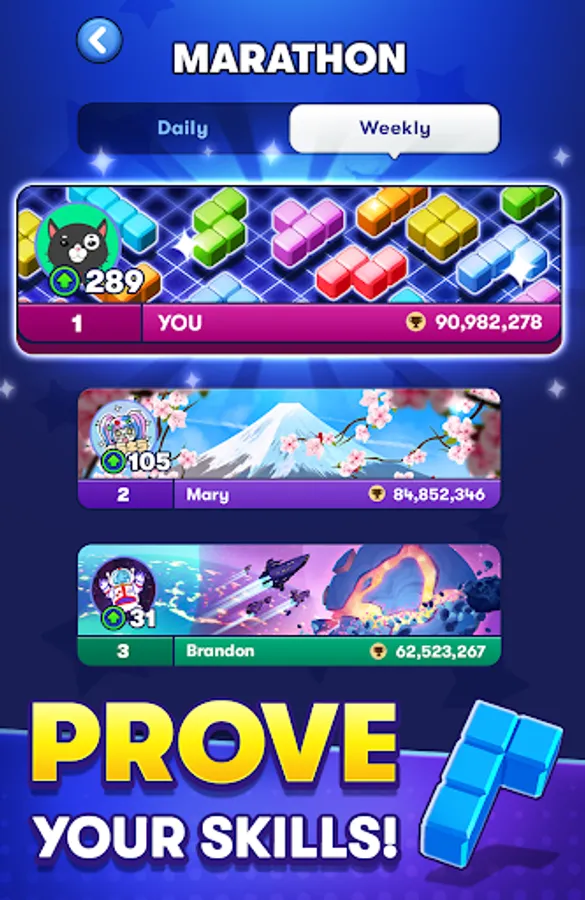 • Master your skills with the iconic Tetris gameplay you know and love.