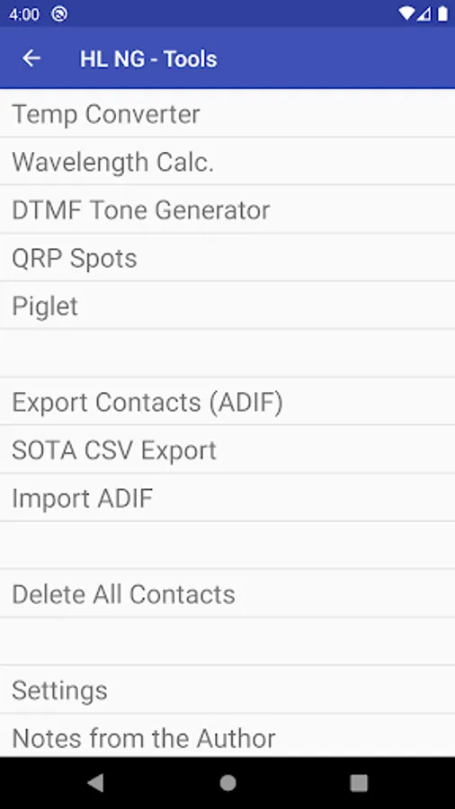 HamLog is an amateur radio logging application with many useful tools built-in. It is meant for use when operating portable from the field or mobile (drive safe!). It supports both Import and Export of logs in ADIF format.
