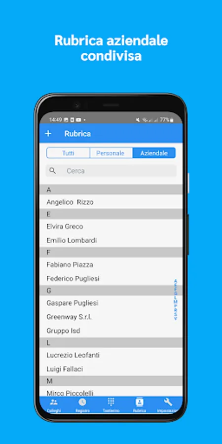 Svoolaz turns your smartphone into your mobile office, with all the professional features of your company telephone extension at your fingertips: shared company directory, colleagues list, centralized call log and more.