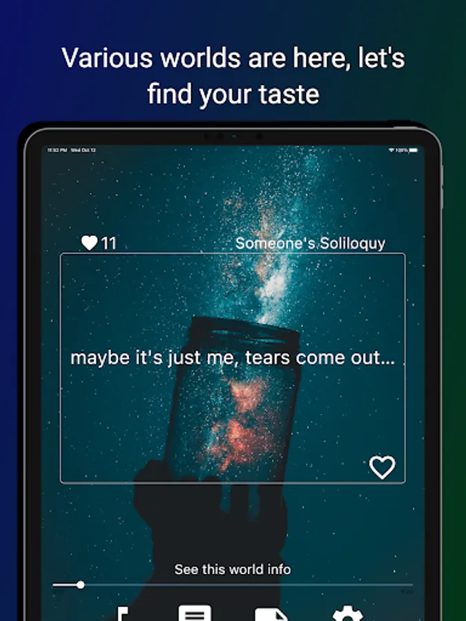 We have prepared a wide variety of worlds, such as emotional, fantastic, and otherworldly.