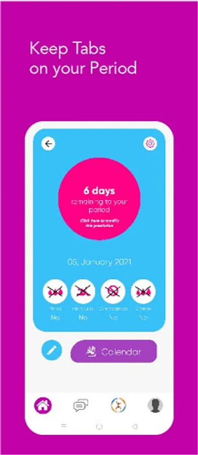 Set up Cycle: After you download and install the Application, you are requested to input some information about your menstrual period which would be used to set up your menstrual cycle.