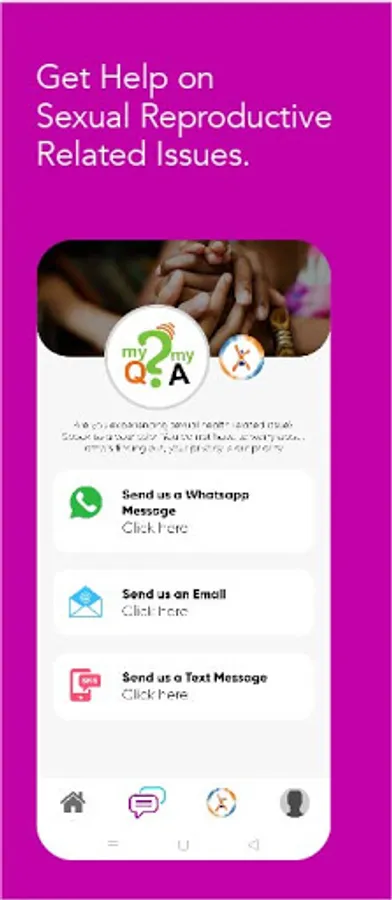 ASK: You can get further information, counseling or clarification from our trained counselors in this section. Referrals to health service providers are also provided for those who might need further attention. Several options are available for you to communicate, you can send text messages FREE to the short code 38120 on MTN, Airtel and Glo. Also available is WhatsApp chat and through emails. Just include your Age, Sex and location.
