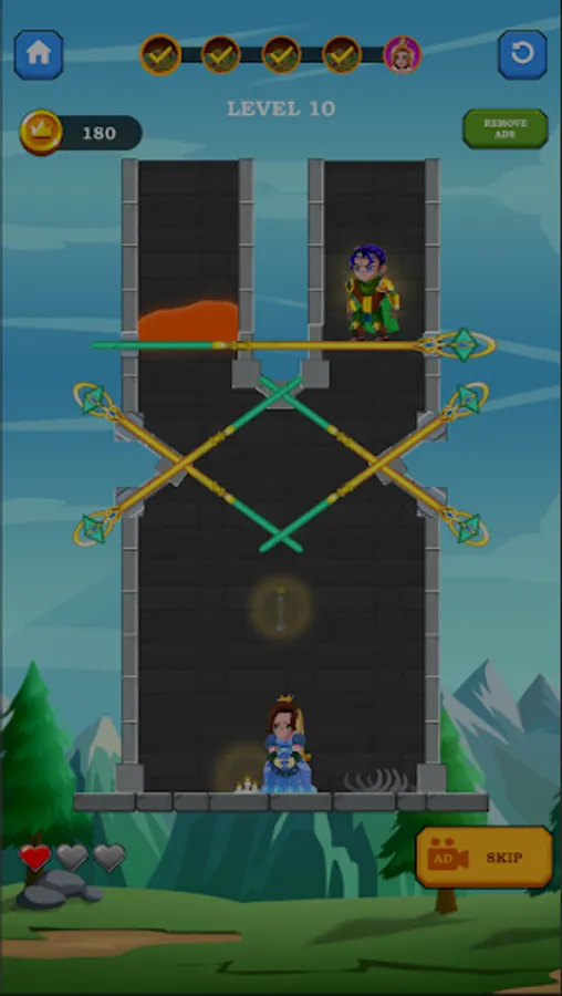 Вам предстоит окунуться в мир головоломок , чтобы победить нужно проявить смекалку . Спасите принцессу .