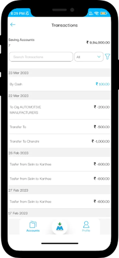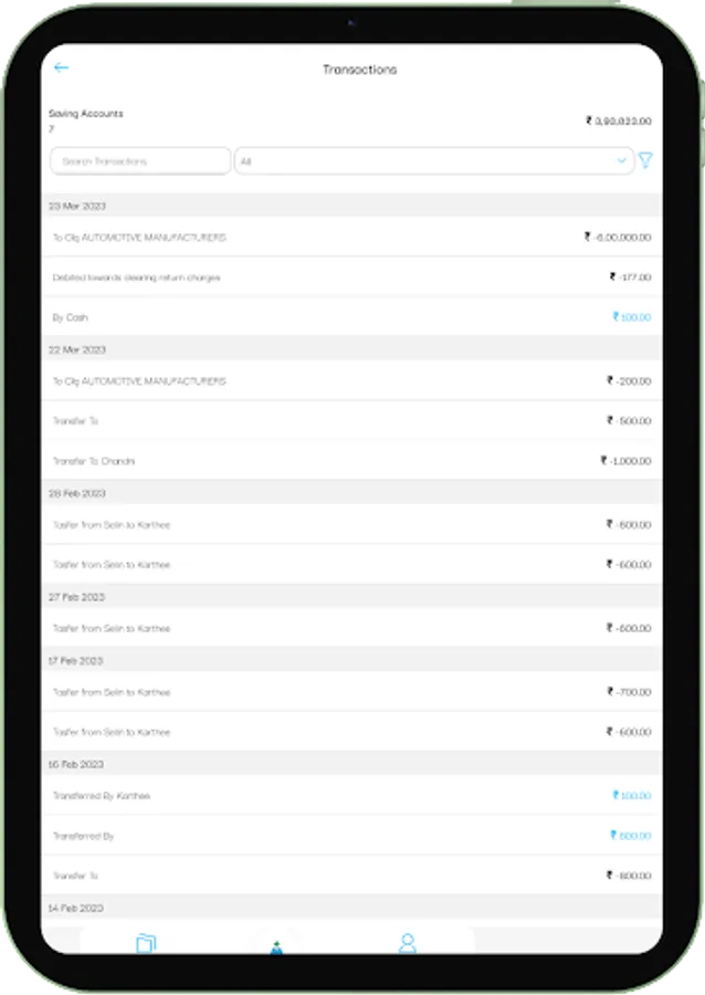 Customers can view the all the accounts they hold including Deposits and Loans. All transactions in the respective accounts is visible to the customers with advanced search features on transactions.