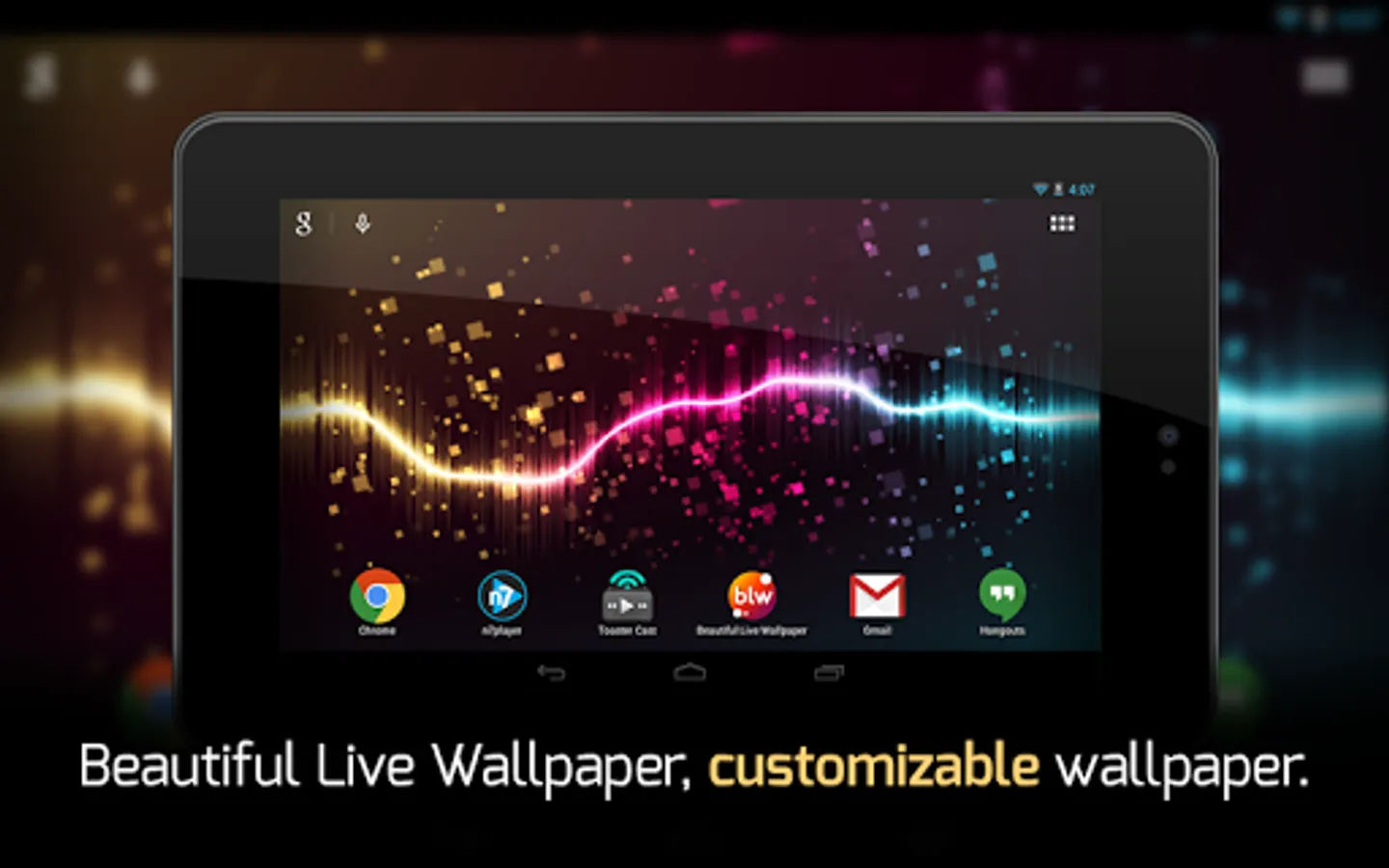 - One of a kind, colorful live wallpaper generator with smooth OpenGL animations