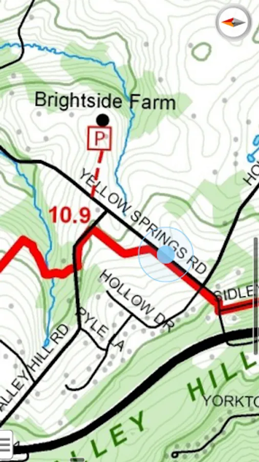- Tap on a mile marker or parking lot marker to see the text comments from the guidebook.