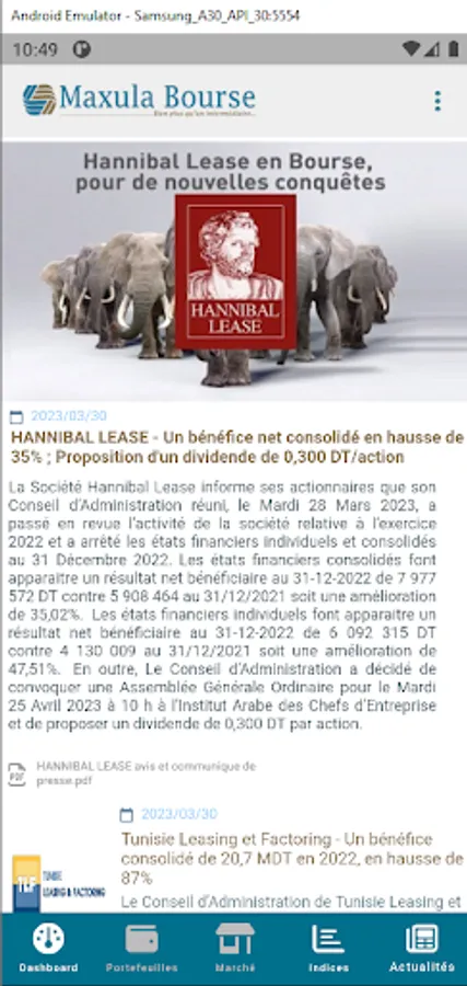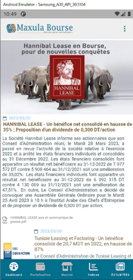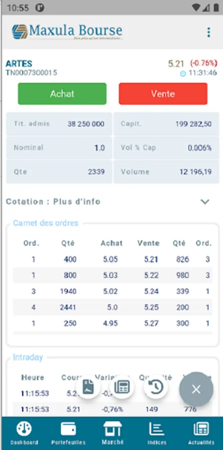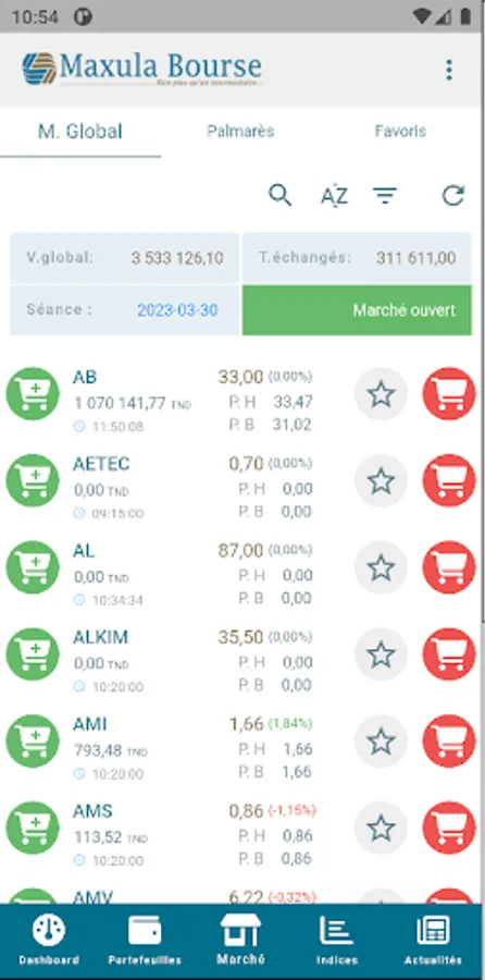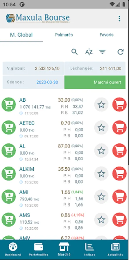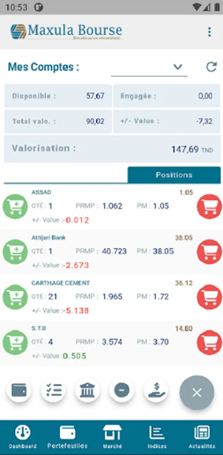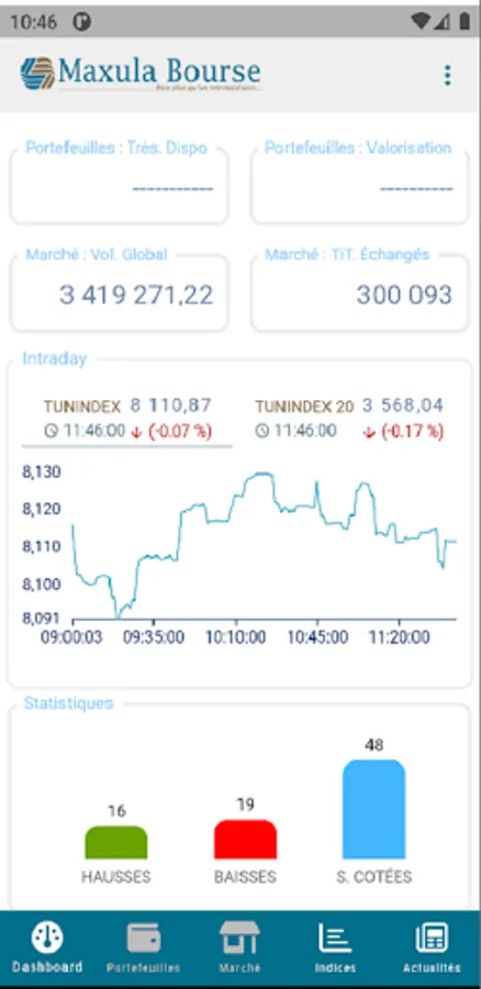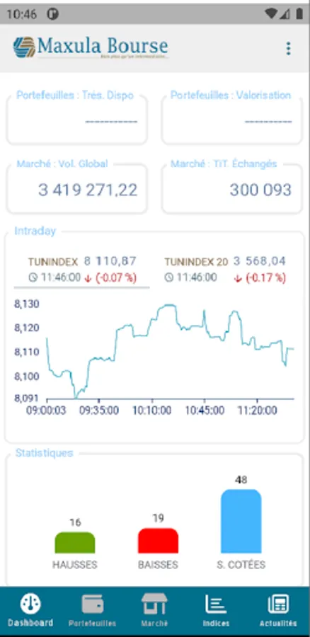 - to follow the quotations of the indices and market values of the Tunis stock exchange.