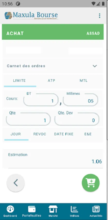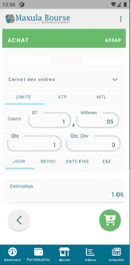 Tunis MAXBOOK dung market monitoring application. The application allows the user: