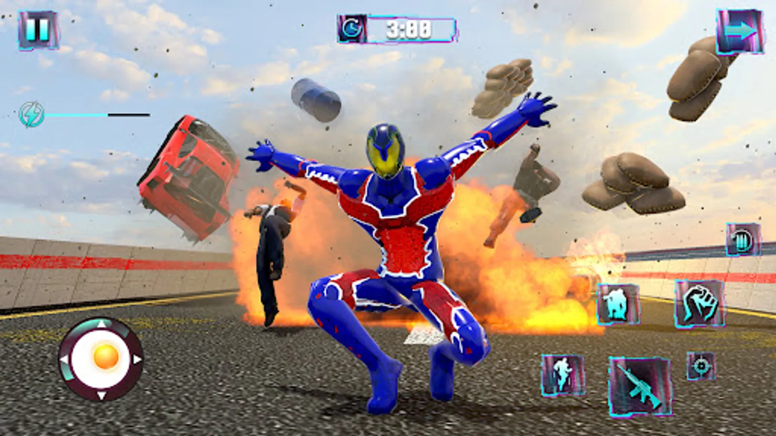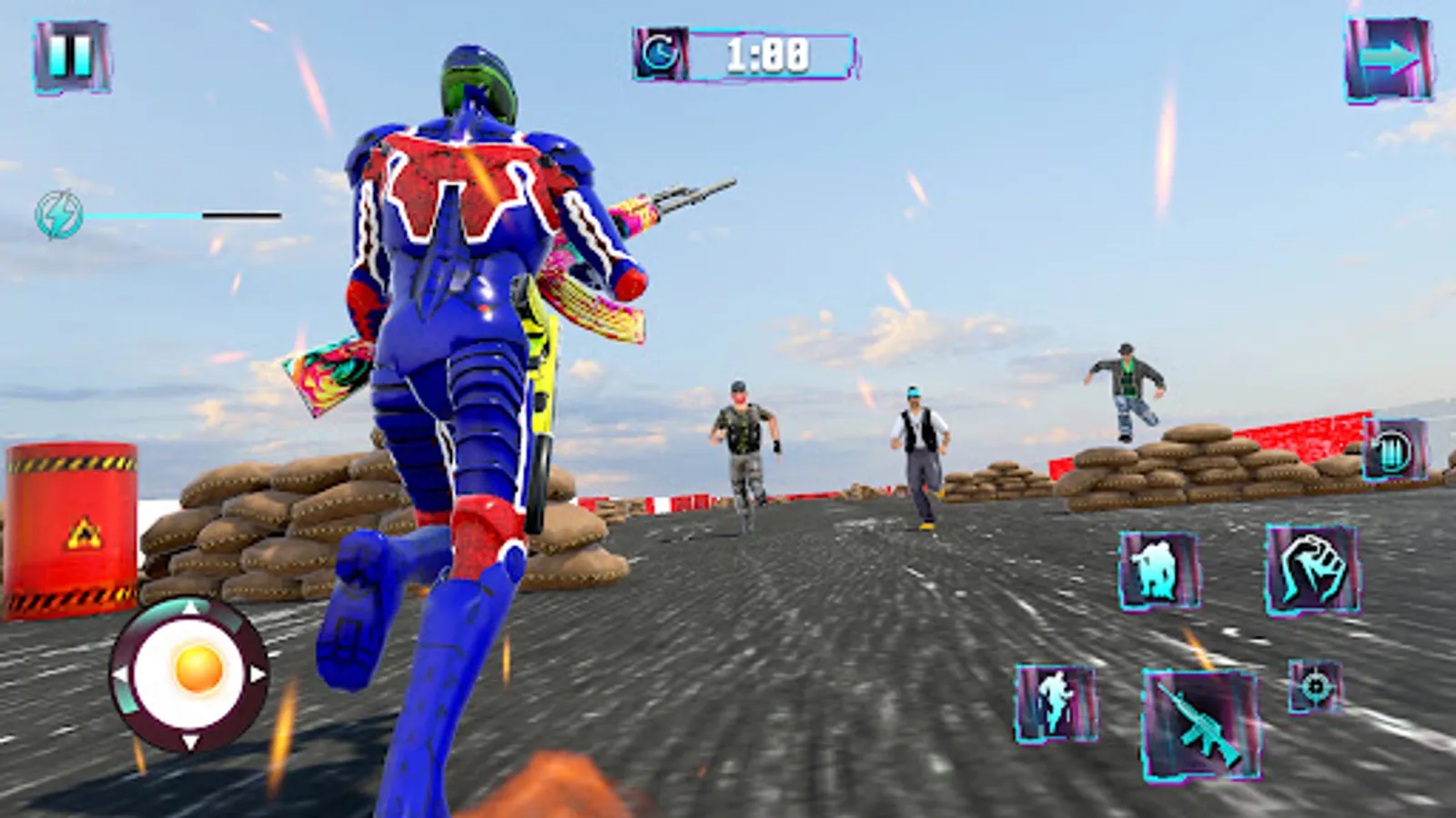 Save your city from crime mafia lords by defeating crime mafia gang’s angry robots using super punch and super smash super powers and get rid of crime mafia in this spider-man wali game.
