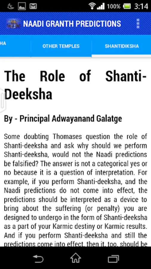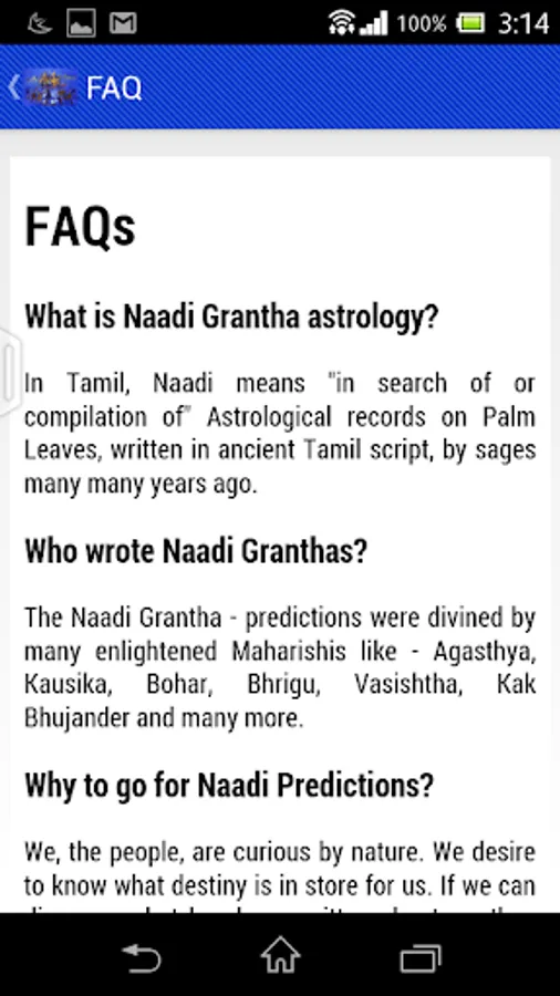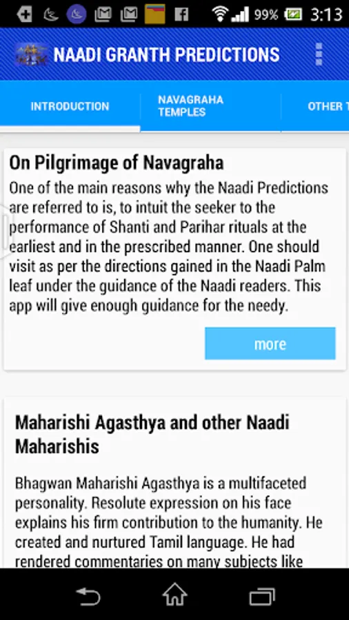 One of the main reasons why the Naadi Predictions are referred to is, to intuit the seeker to the performance of Shanti and Parihar rituals at the earliest and in the prescribed manner. One should visit as per the directions gained in the Naadi Palm leaf under the guidance of the Naadi readers. This app will give enough guidance for the needy.