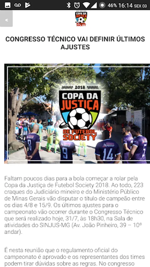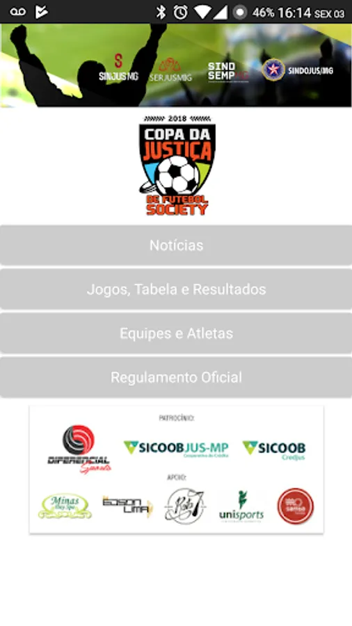 Follow closely the Justice Cup 2018. Championship that dispute the servants of the unions of Justice of Minas Gerais. Sinjus MG, Serjusmig Sindsemp MG and Sindojus / mg