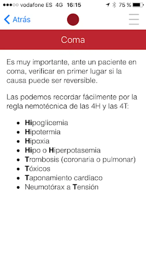 In URG you can navigate through its interactive algorithms that allow you to approximate a diagnosis from symptoms such as coma, syncope, chest pain, dyspnea, acute neurological focal, abdominal pain, fever, headache, hemoptysis, hematuria, diarrhea; or on the management of serious pathologies, such as different types of shock, abdominal and thoracic aneurysm, head trauma and others; you also have algorithms on such prevalent pathologies as atrial fibrillation, the exacerbation of COPD or the main infectious diseases. In the URG app you will find a total of 185 diagnostic, management or treatment algorithms.