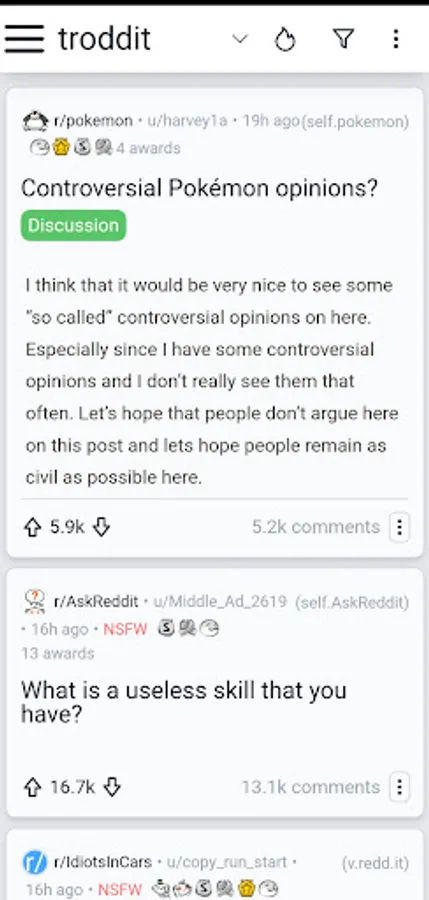 Search Reddit for posts or subreddits quickly with auto-complete.