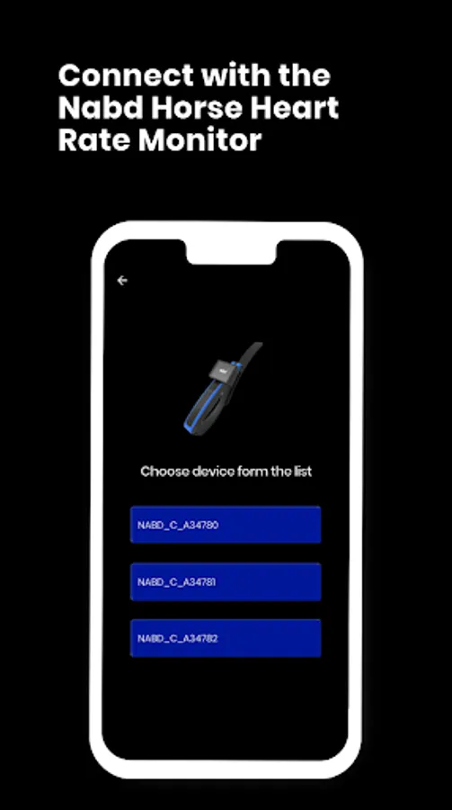 - CONNECT VIA BLUETOOTH TO THE NABD EQUINE HEART RATE MONITOR