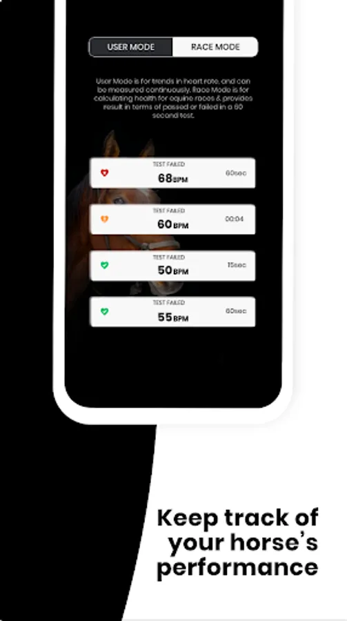 The User Mode on the Nabd Monitor shows the continuous heart rate and the trends that can help track the horse’s performance during training.