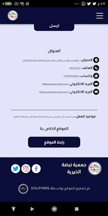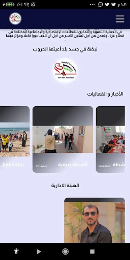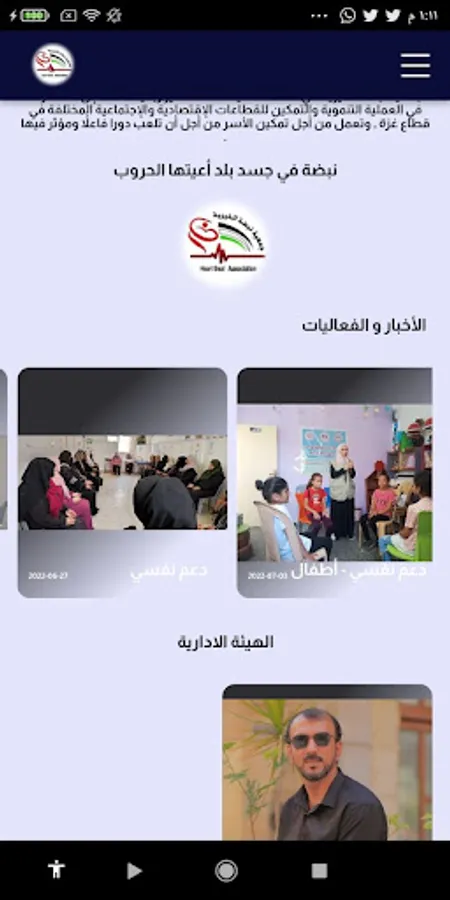 This application is very simple. It is an application belonging to a charitable organization that displays the latest activities and events that took place in the institution. You can also communicate with the institution through it, send messages, and identify the location and addresses of communication with the institution. All of the application contains on an interface that displays some legal information about the organization, such as licenses and goals, and you can also, through the last interface of the application, submit a request to volunteer with the organization. The application does not contain a chat system and does not contain advertisements. Its purpose is only to follow the news of the charitable organization and enable people to know it. More