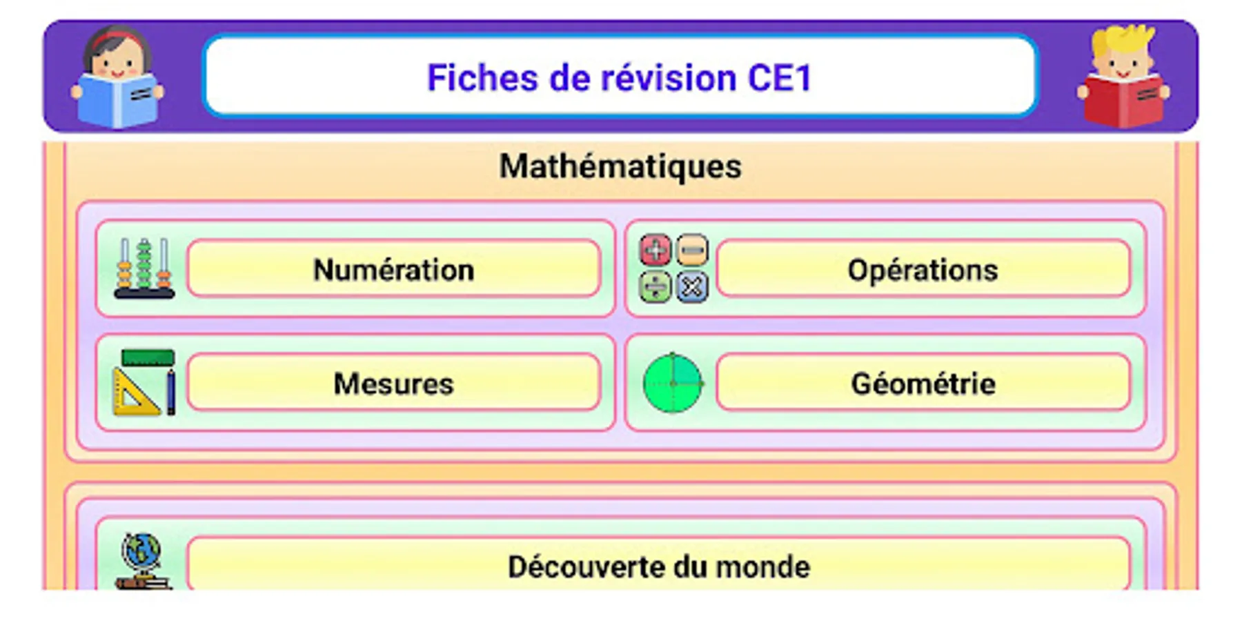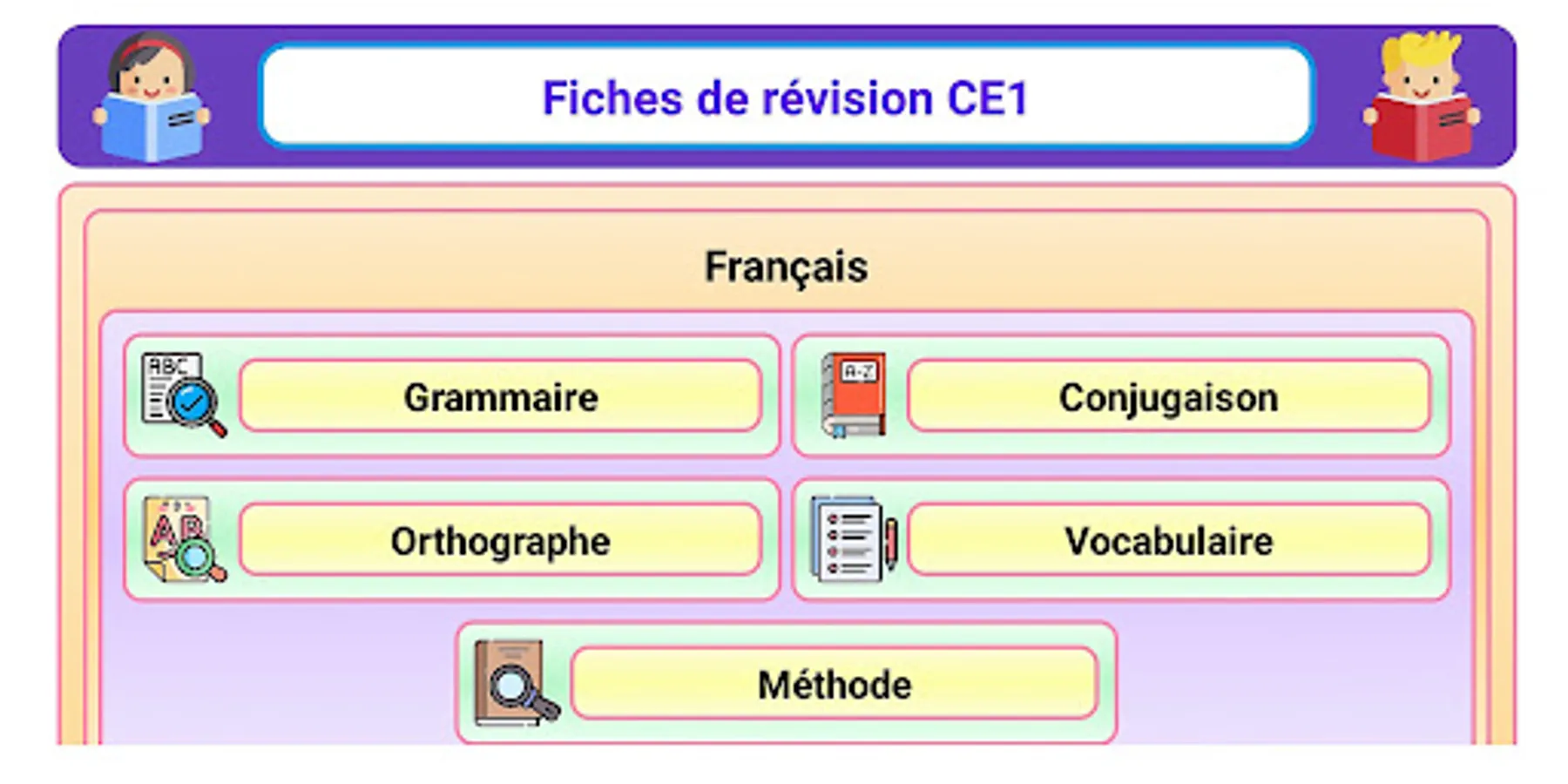 This application contains review sheets for CE1 students of all lessons without Internet.