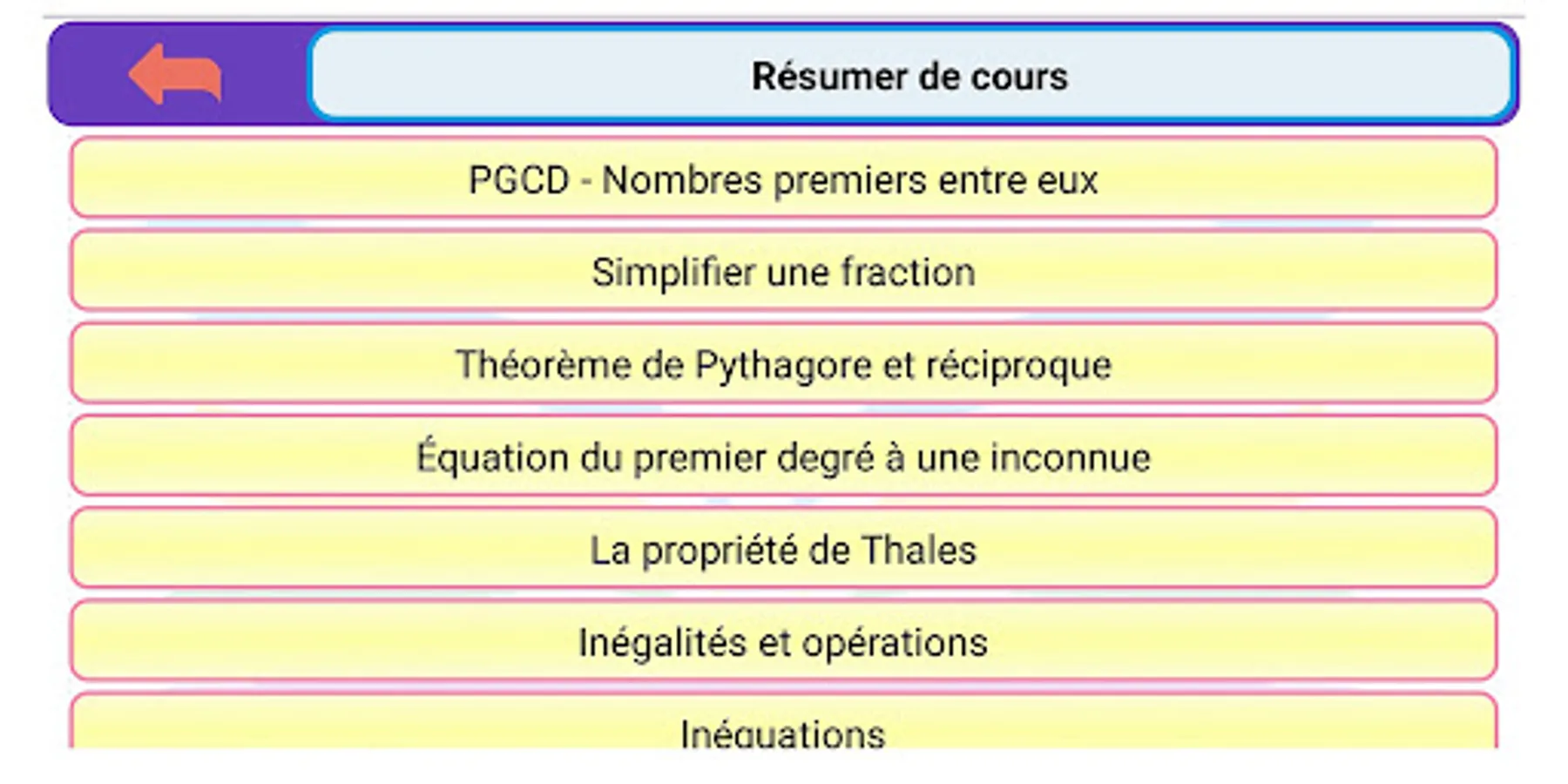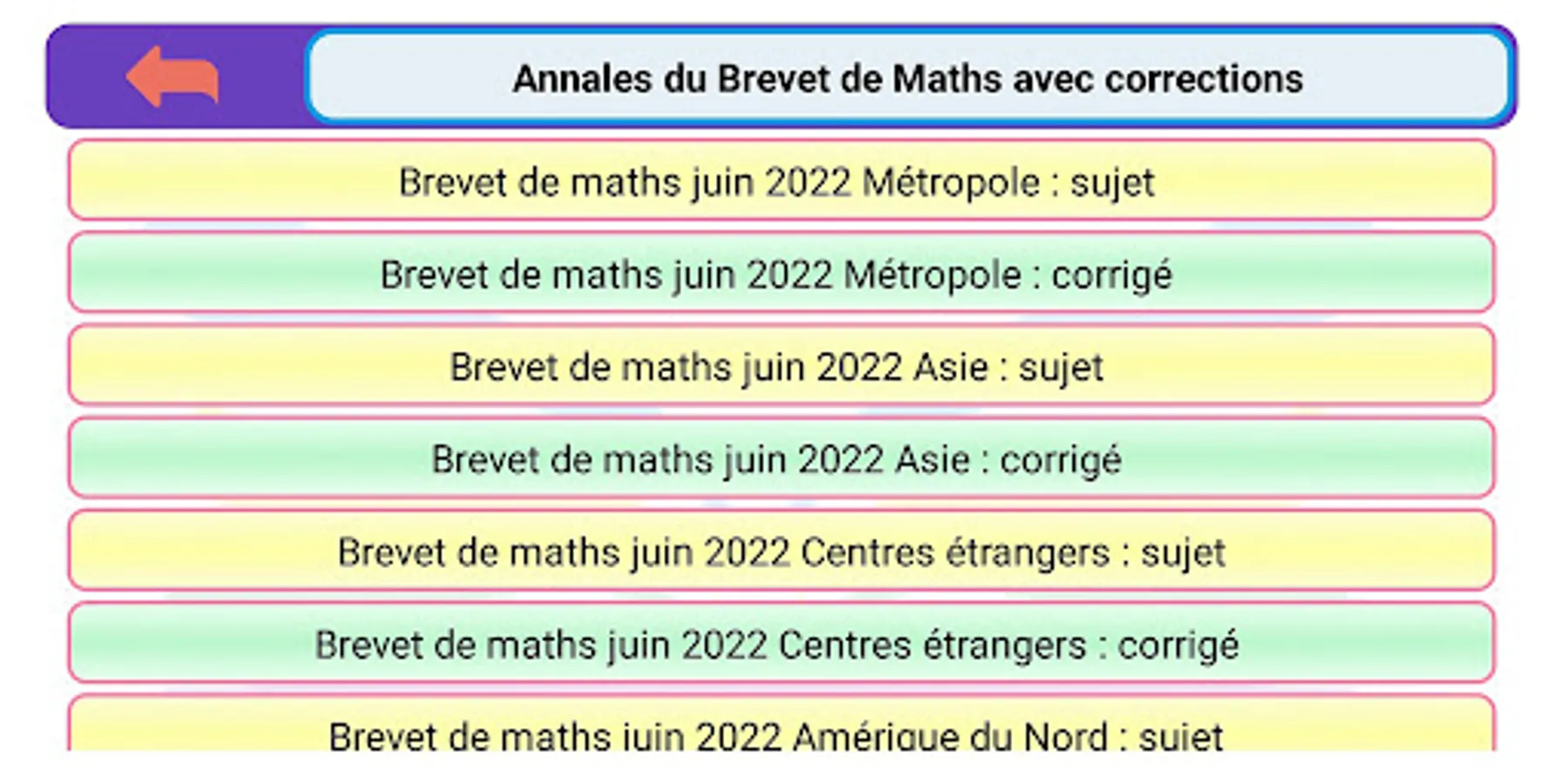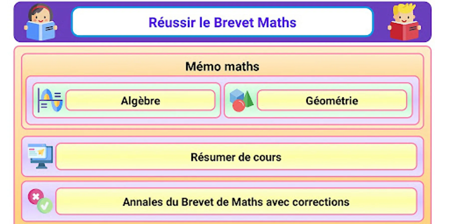 This application contains memos, revision sheets and Annals with corrections intended for students to pass the Brevet en Maths exam.