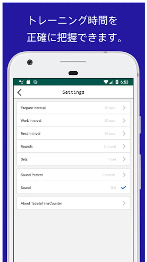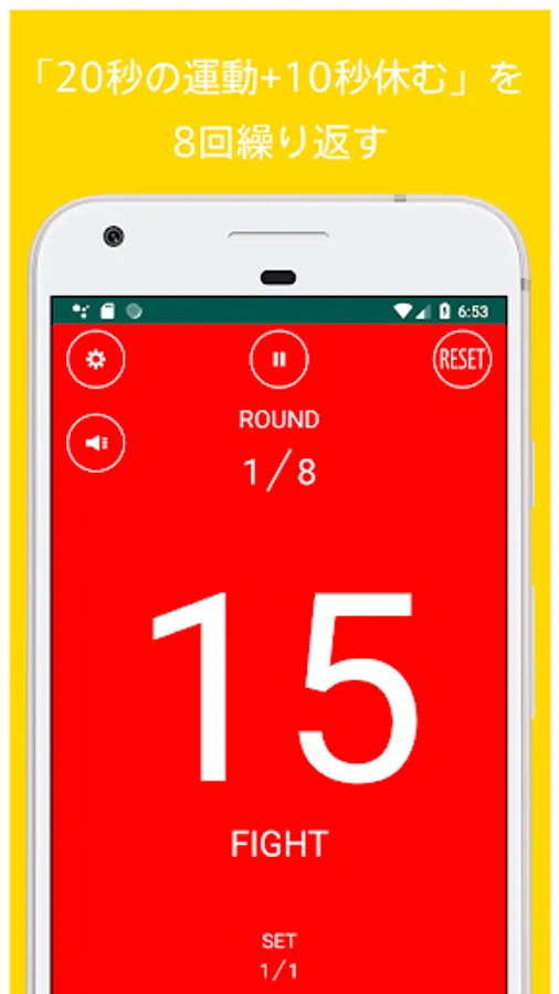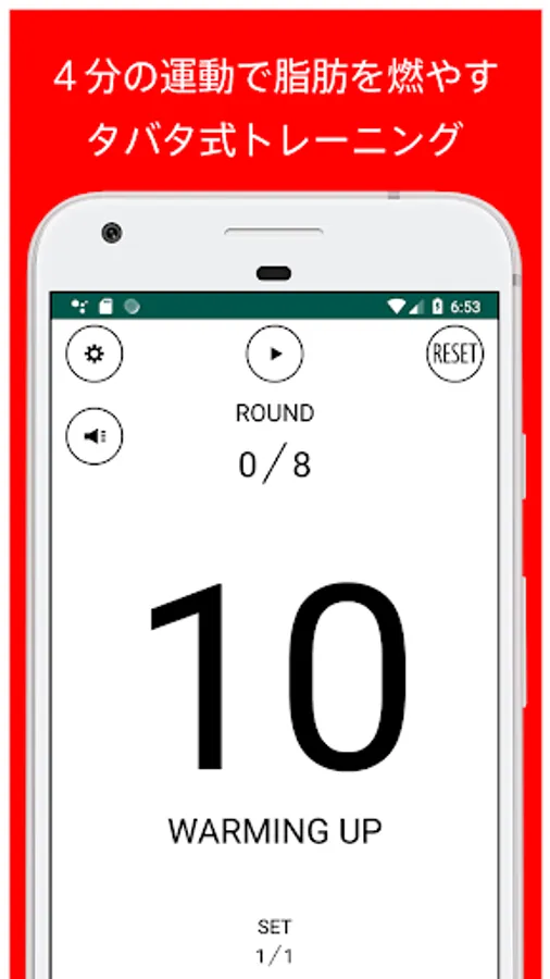 このアプリで(20秒運動+10秒休む)× 8回 = 4分 という時間を正確に把握することができます。