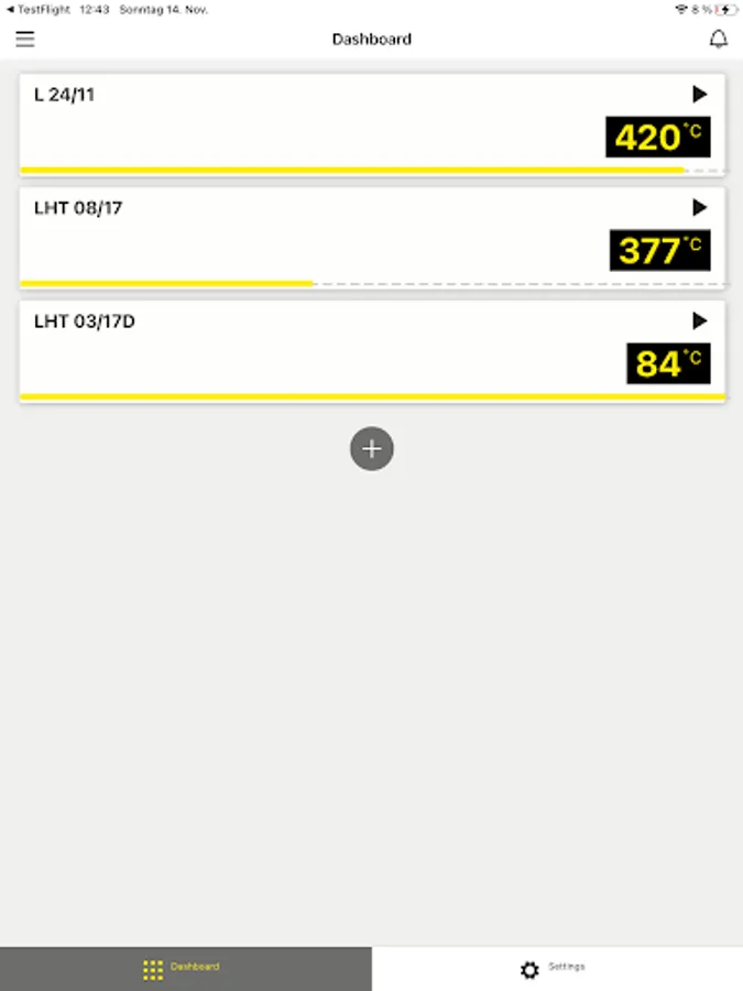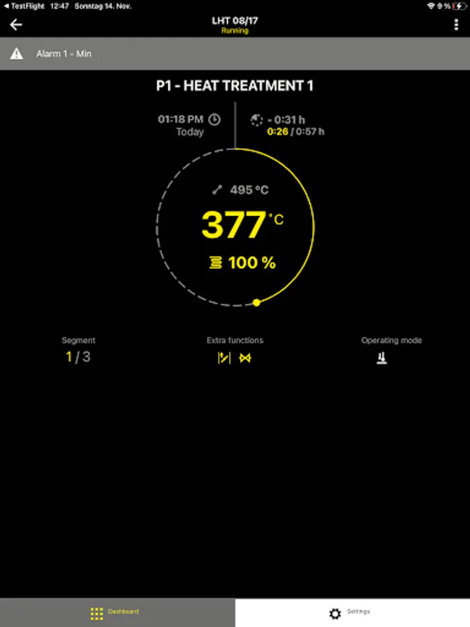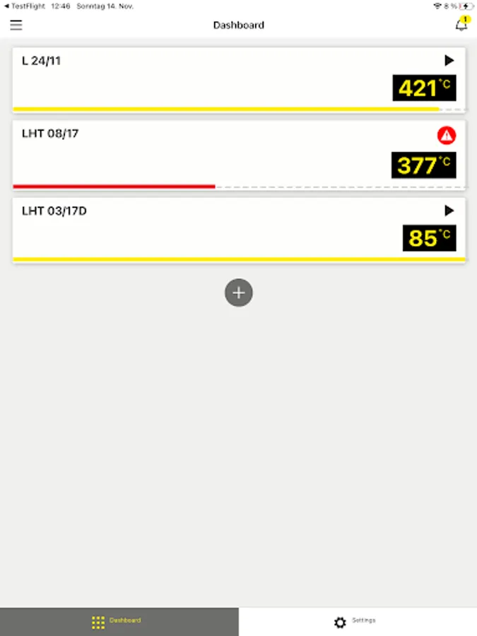 Convenient monitoring of multiple Nabertherm furnaces simultaneously.