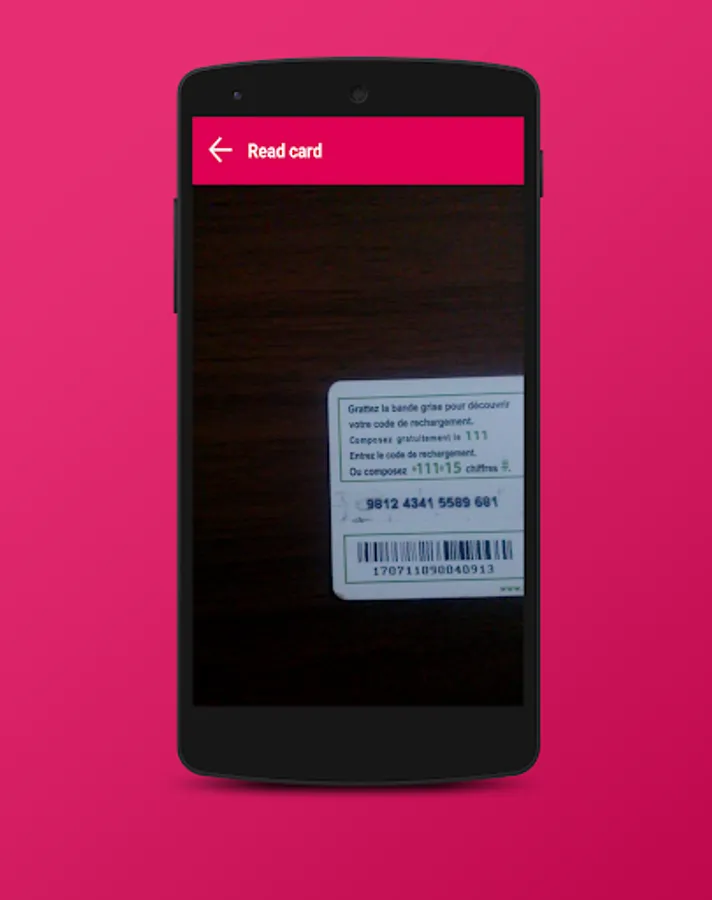 "Read card mobile Recharge" it's simple app uses your device's camera to scan Recharge card Number .