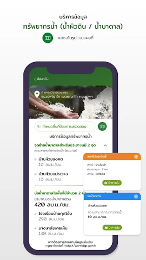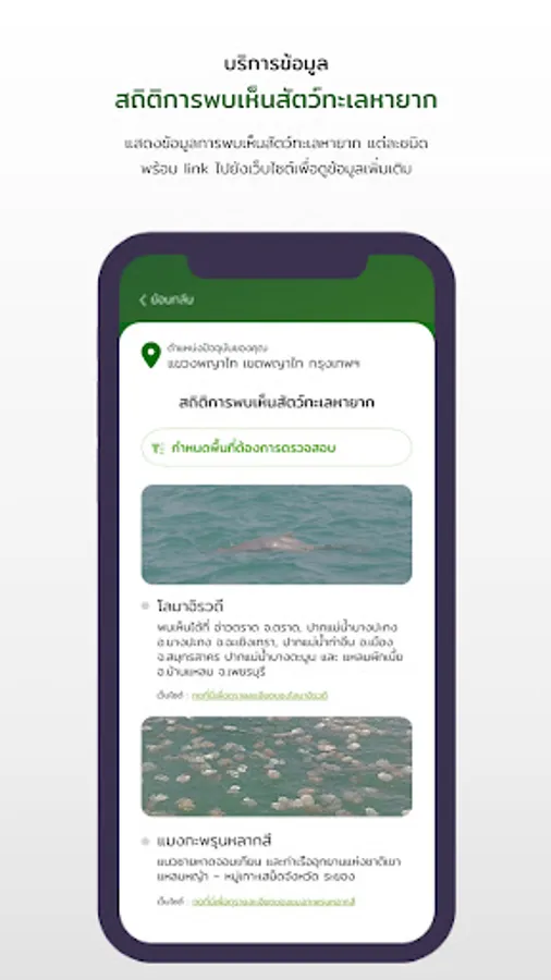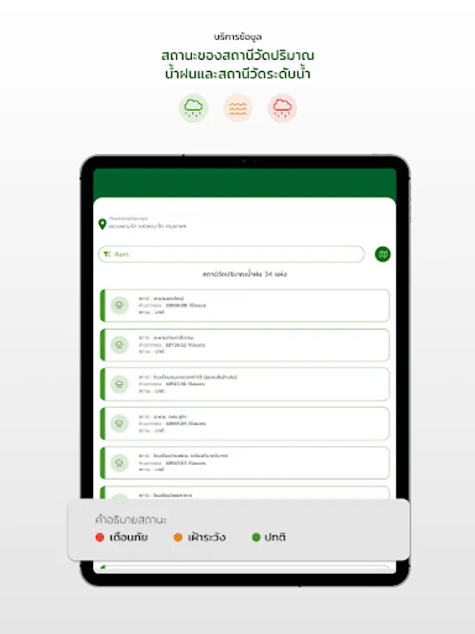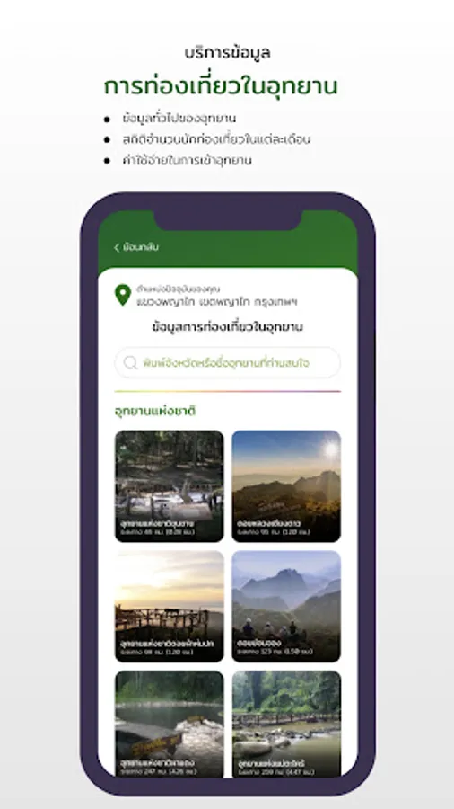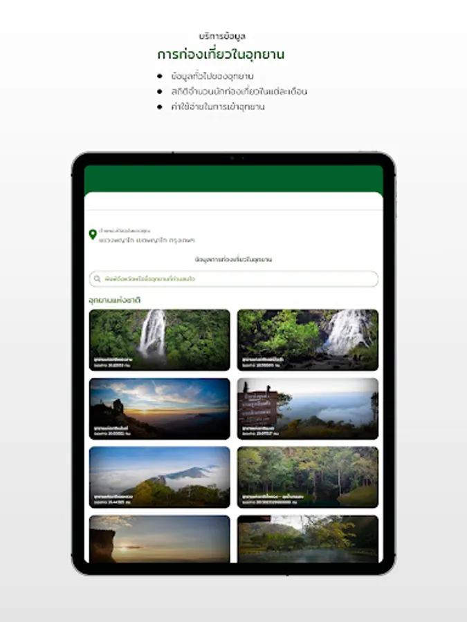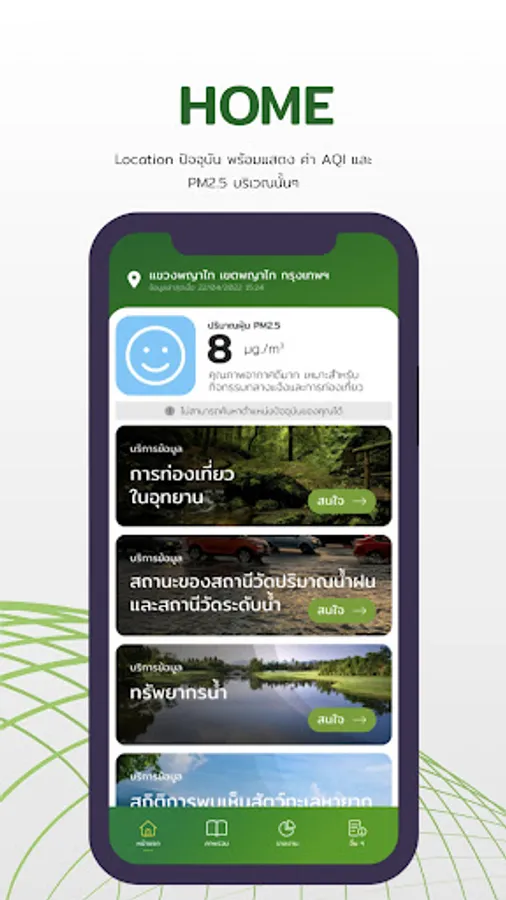 Application for information services to citizens This system collects and displays application user location data, air quality report, annual report overview of natural resources and environment in 5 areas, as well as important and interesting reports to serve as a source of information for People are notified of natural resource and environmental conditions in order to plan their livelihood or plan tourism as well.
